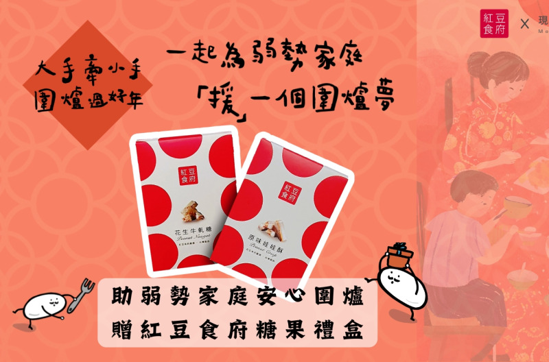助弱勢家庭安心圍爐,贈紅豆食府糖果禮盒