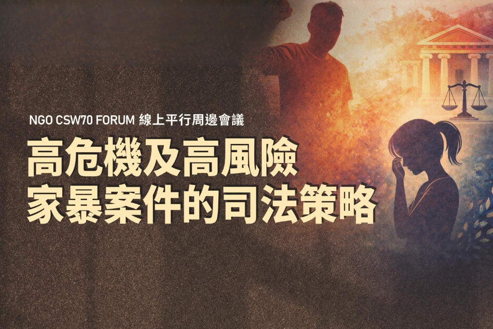 為回應聯合國婦女地位委員會(Commission on the Status of Women, CSW)第70屆會議(CSW70)「促進婦女司法可近性」的重要議題,本會將於 2026年3月19日舉辦 NGO CSW70 線上平行論壇,邀集司法、警政、社政及國際實務工作者,共同探討 高危機及高風險家庭暴力案件的司法策略。