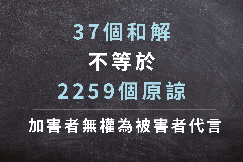 37個和解不等於2259個原諒 加害者無權為被害者代言