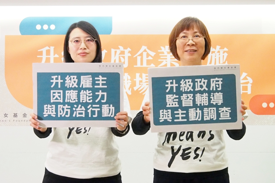 基金會指出,上述調查結果與基金會長年觀察不謀而合,員工認為公司應積極防治性騷擾,然公司多數僅做到基本規範,防治措施不到位也使得職場性騷擾受害者大多不願意向公司提出申訴。對此,現代婦女基金會提出「升級因應能力與防治行動」與「升級督輔導與主動調查」兩大訴求,呼籲企業及政府均應升級防治措施,以強化職場性騷防治效果。