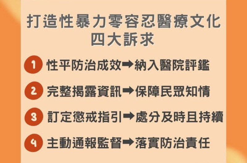 醫界再爆重大私密影像偷拍,本會呼籲建立懲戒指引與預警機制,要求醫院負起連帶責任